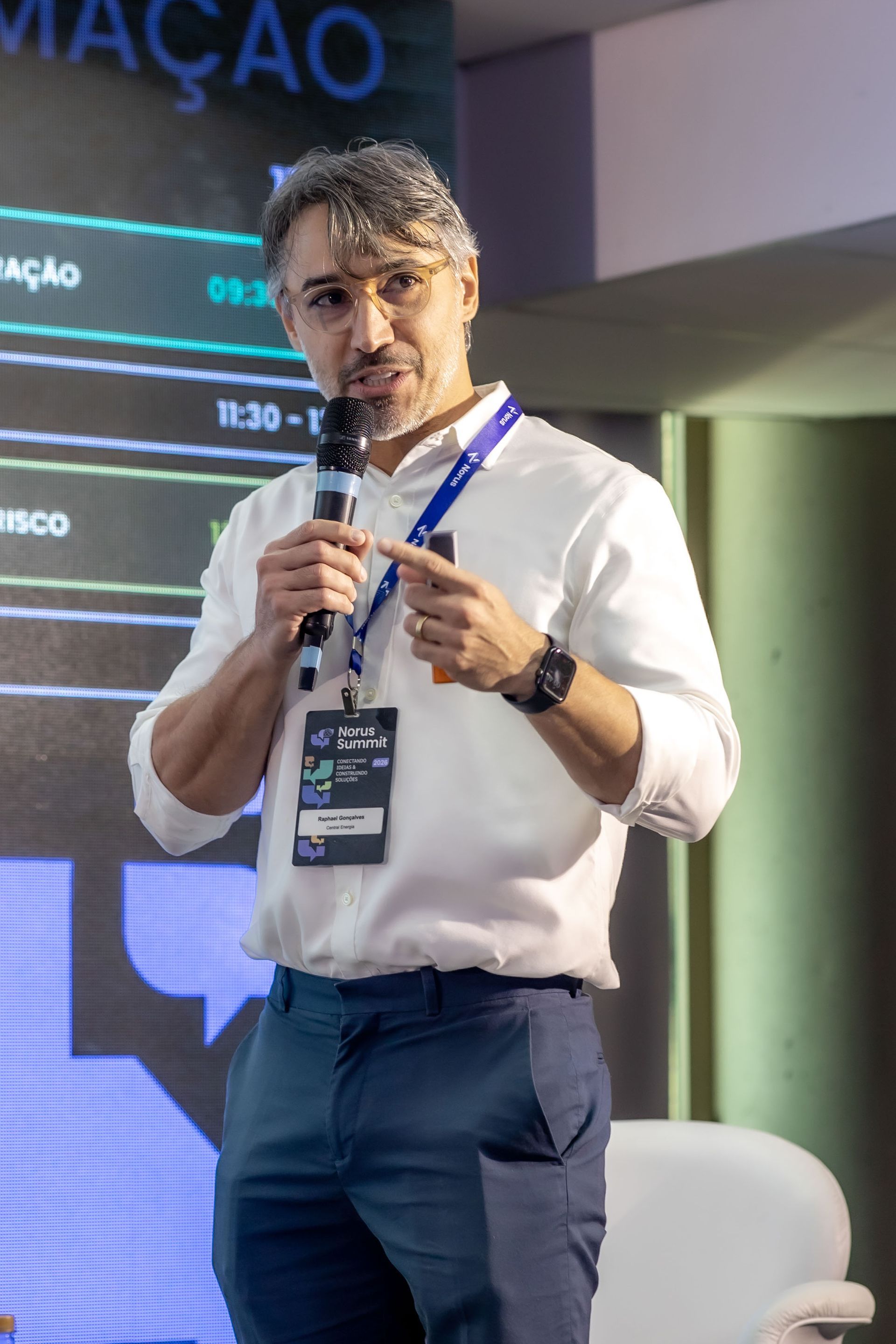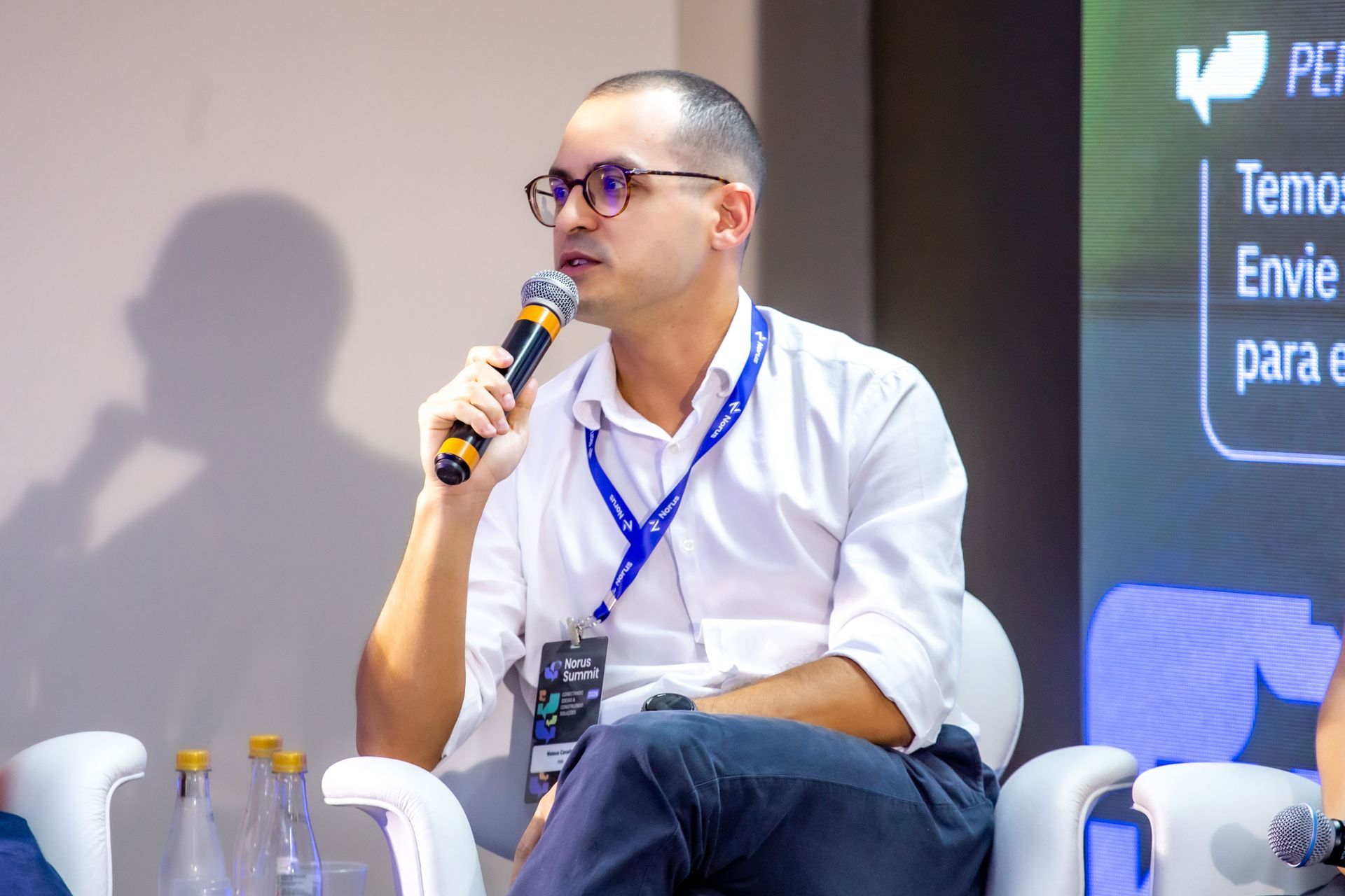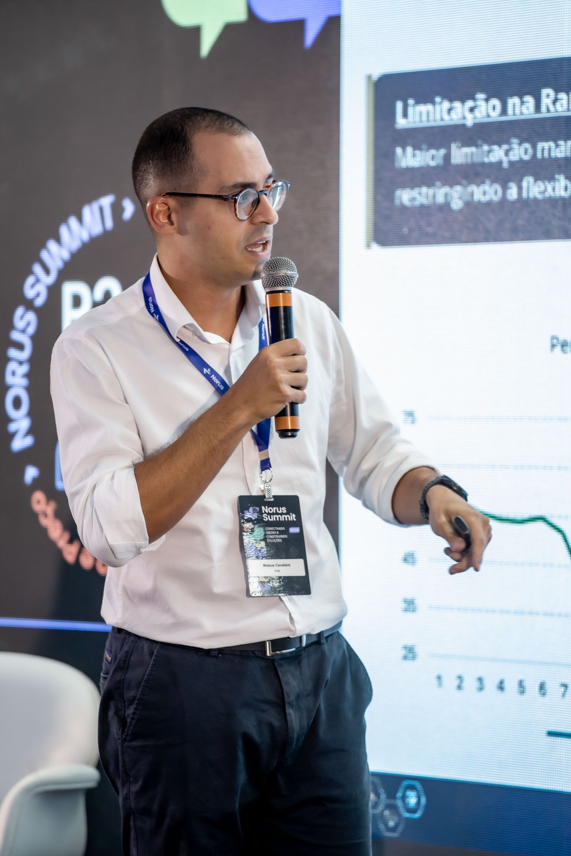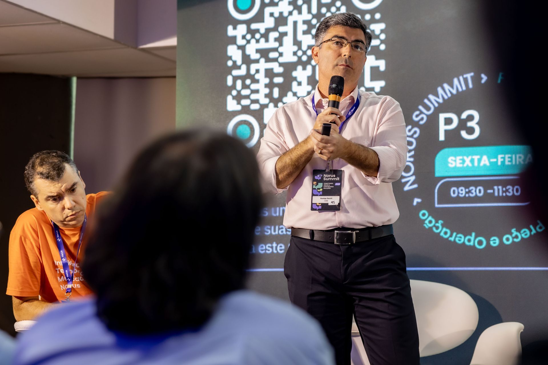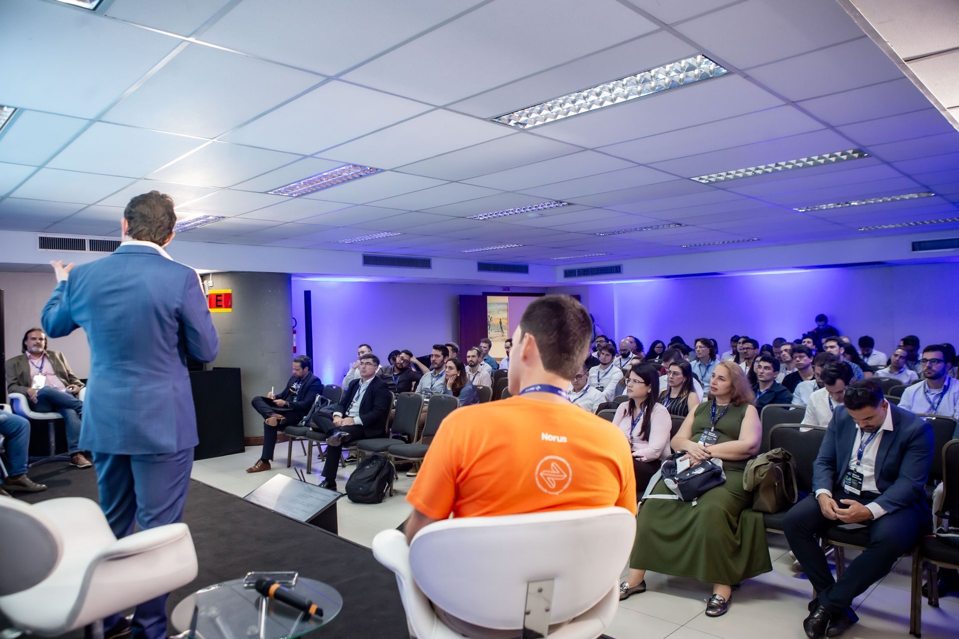 A abertura do evento foi conduzida pelo fala do CEO da Norus Vitor Luiz de Matos, com agradecimentos especiais ao parceiro AWS, que contribuiu com o Norus Summit.