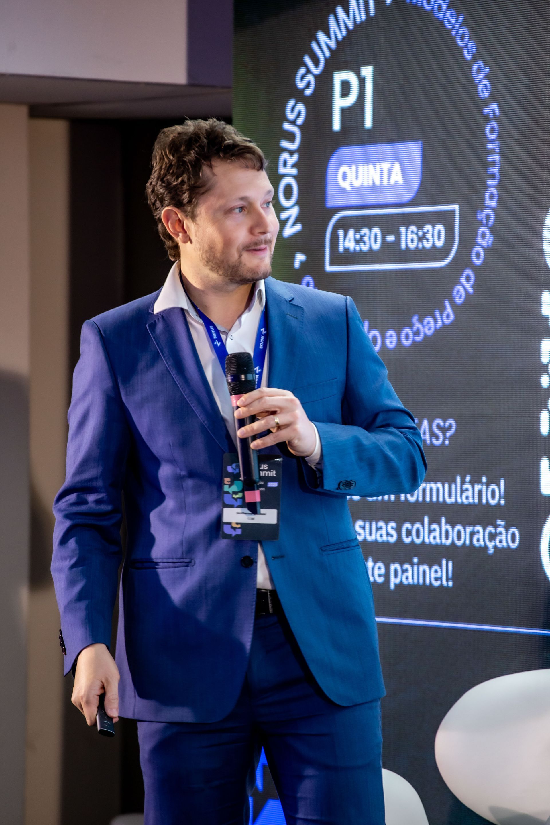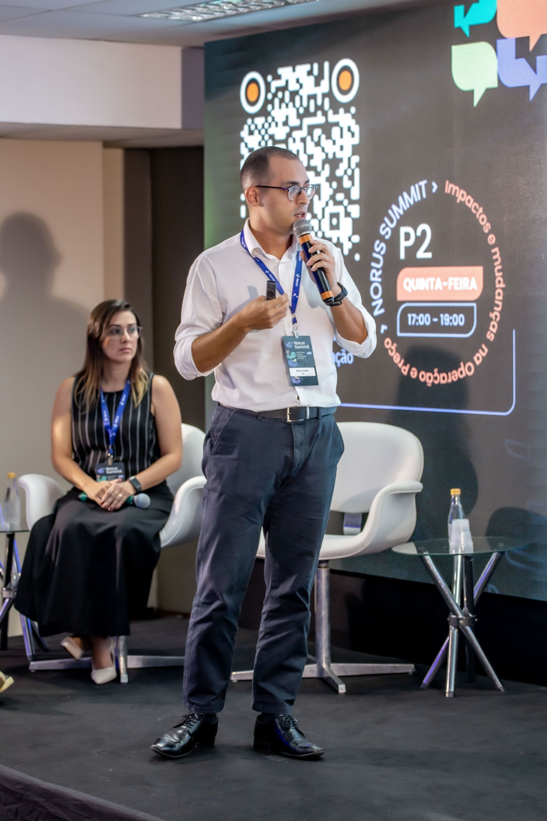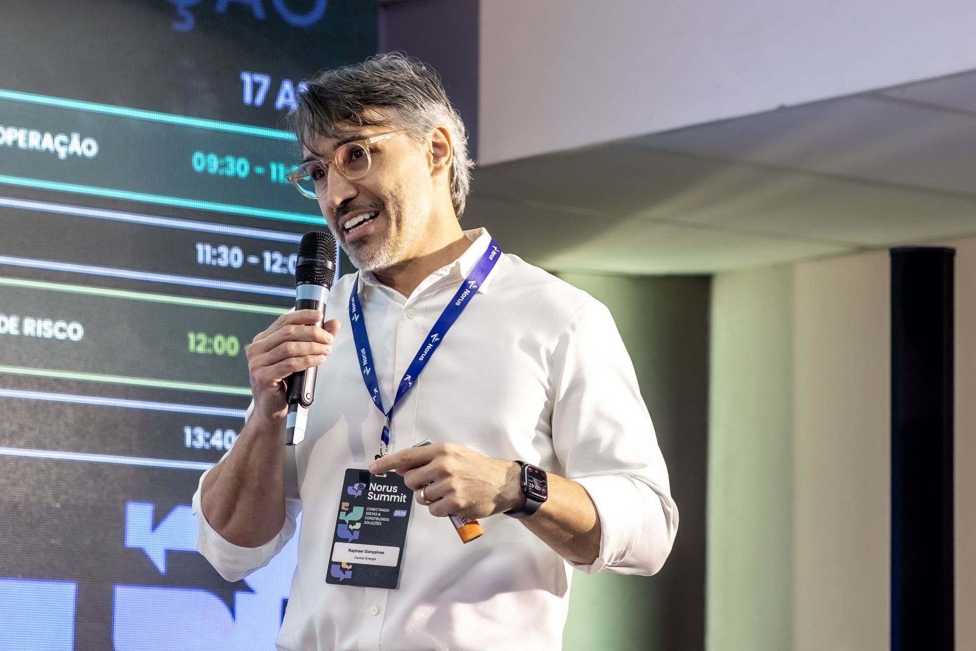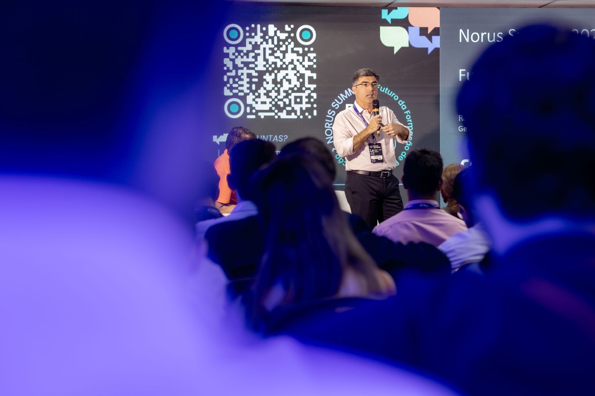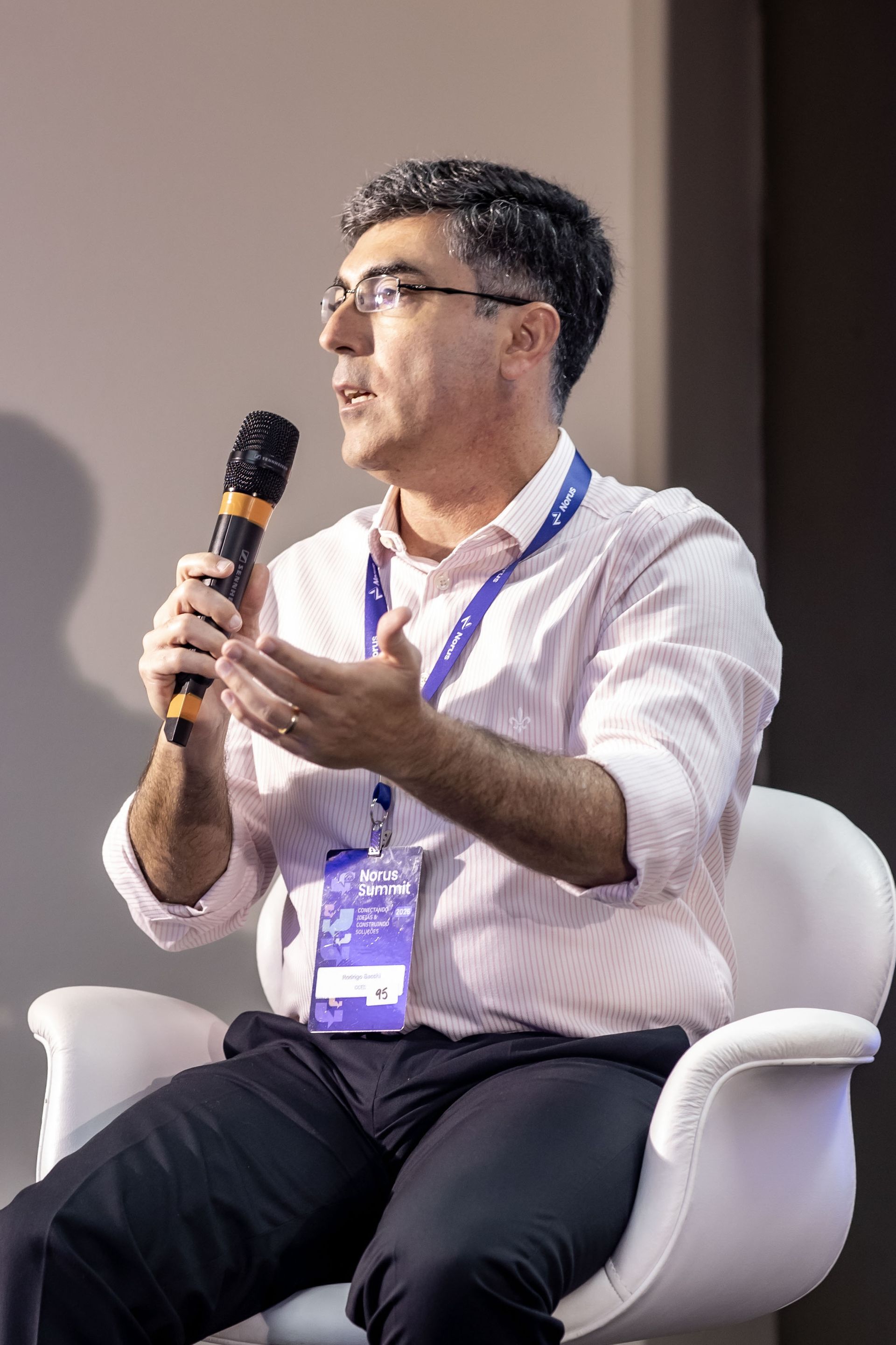 A abertura do evento foi conduzida pelo fala do CEO da Norus Vitor Luiz de Matos, com agradecimentos especiais ao parceiro AWS, que contribuiu com o Norus Summit.