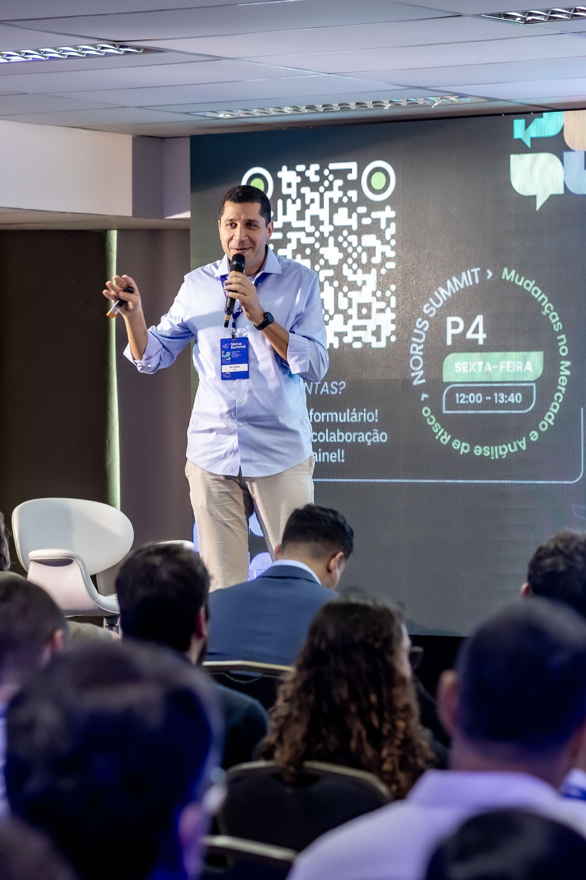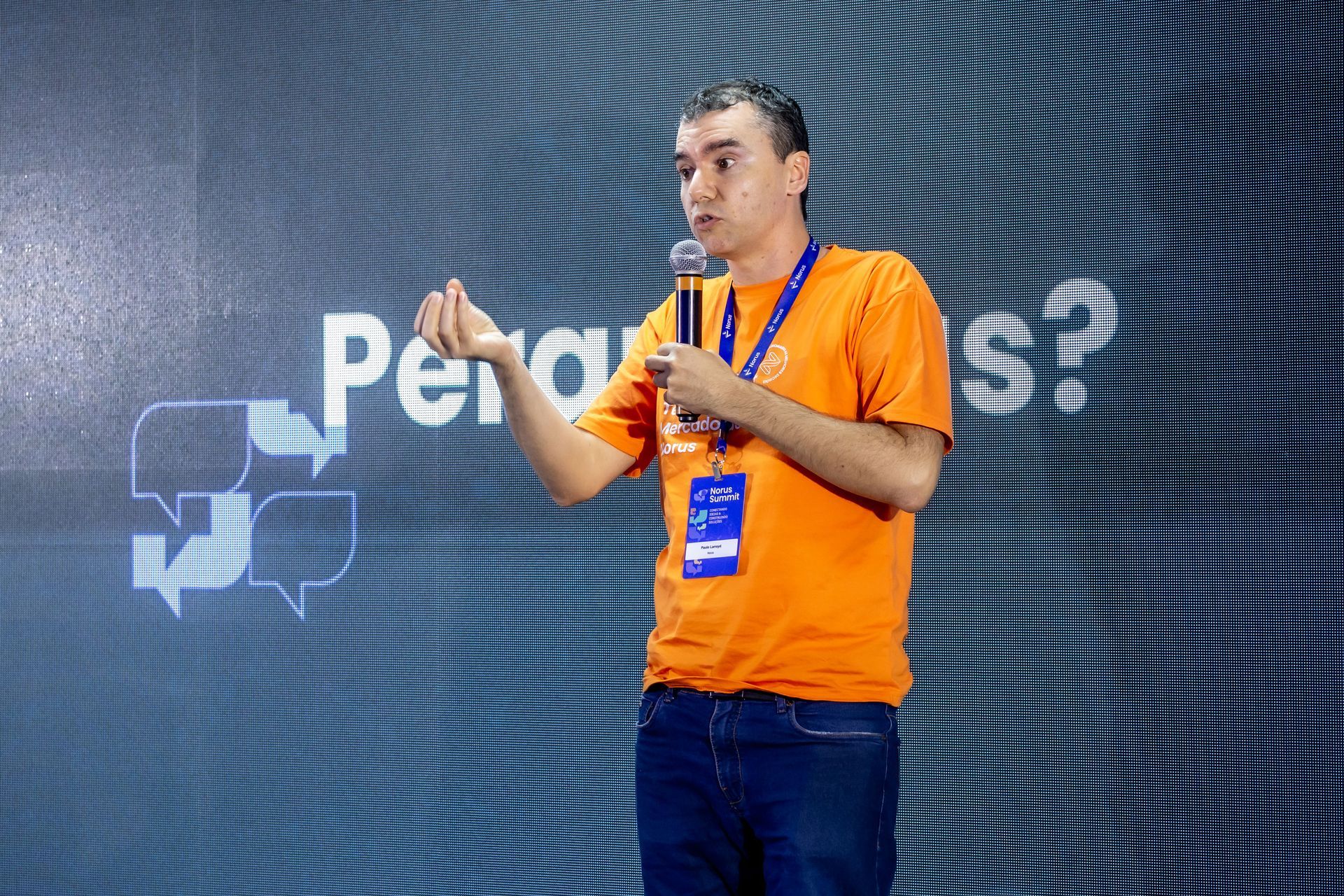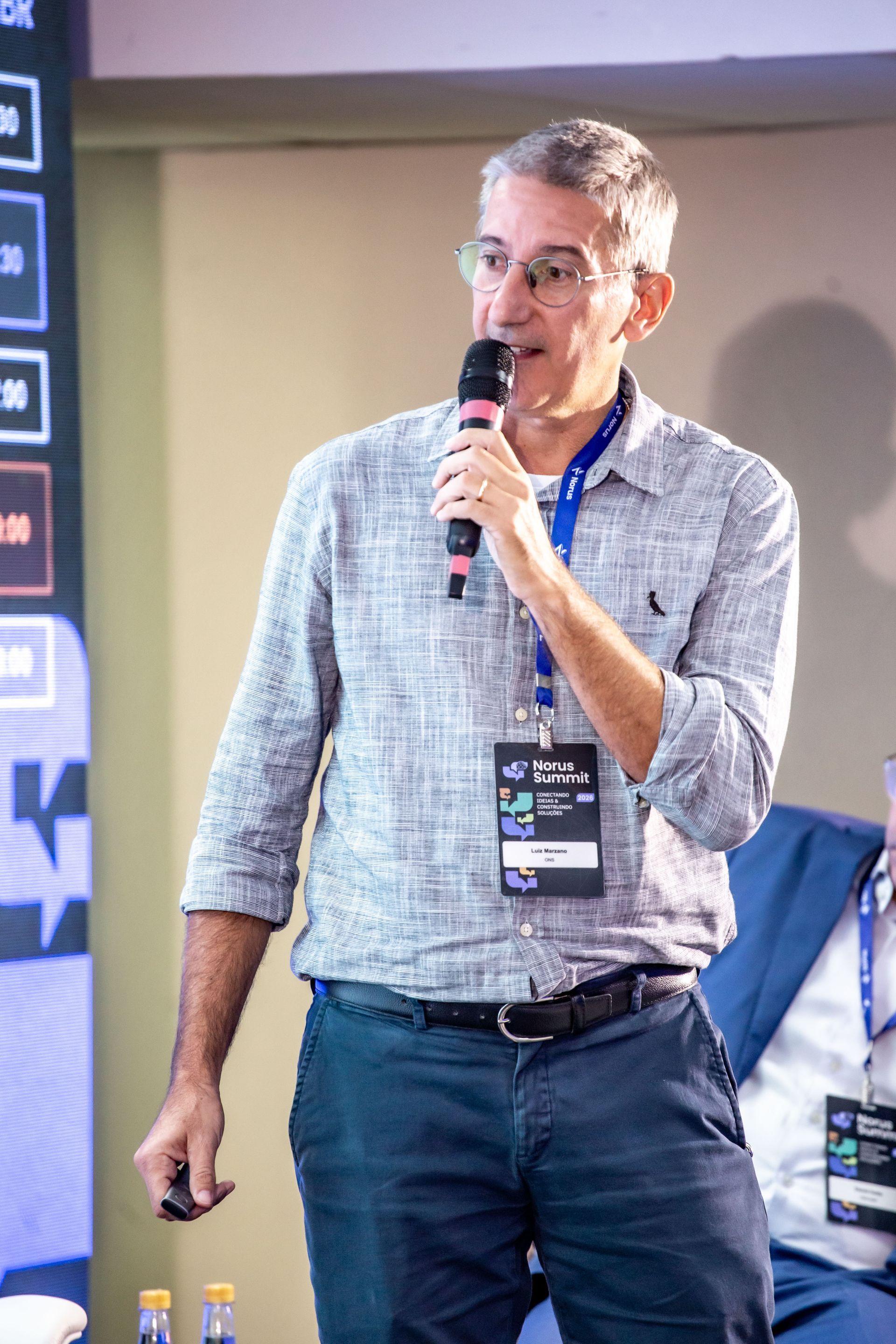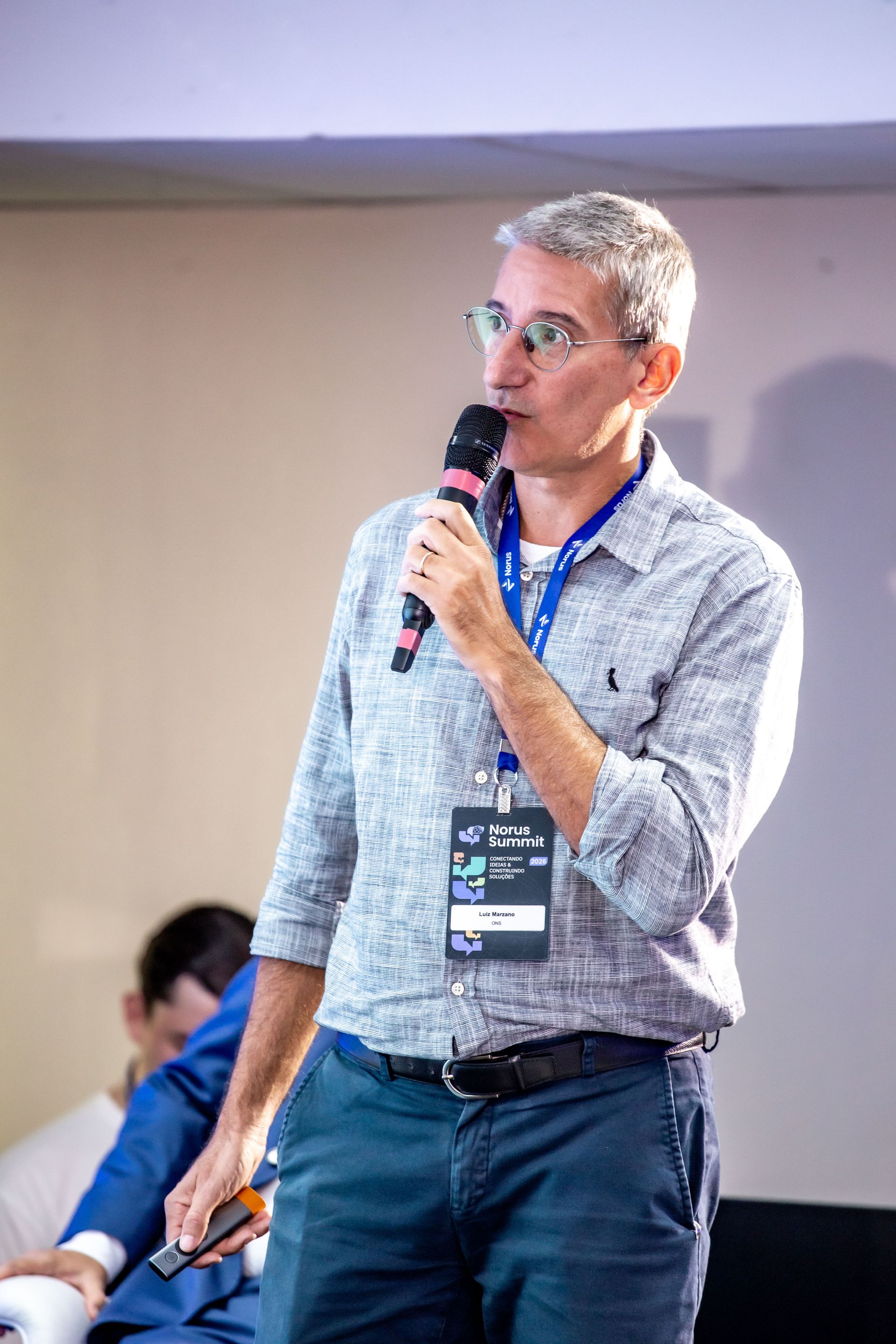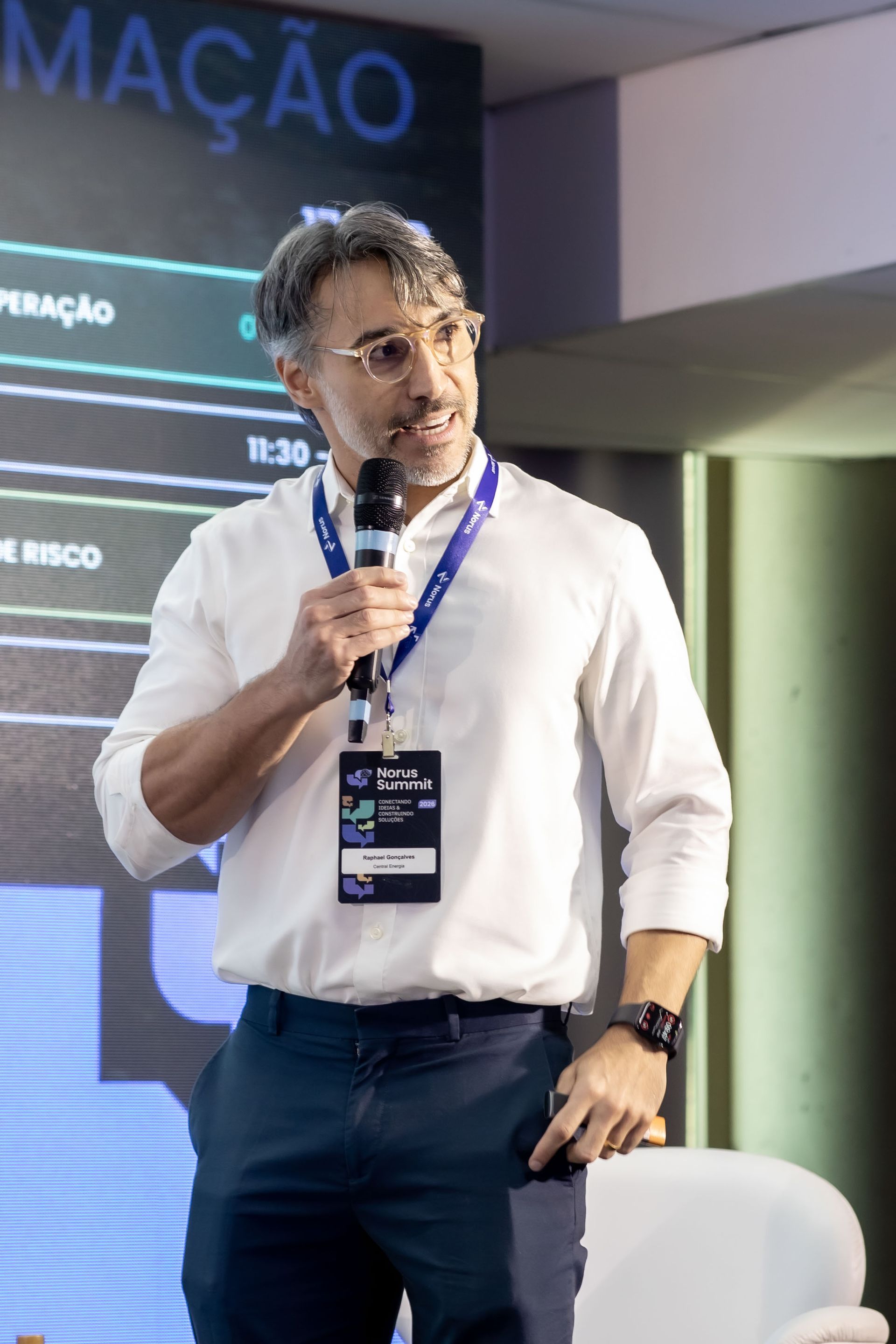 A abertura do evento foi conduzida pelo fala do CEO da Norus Vitor Luiz de Matos, com agradecimentos especiais ao parceiro AWS, que contribuiu com o Norus Summit.