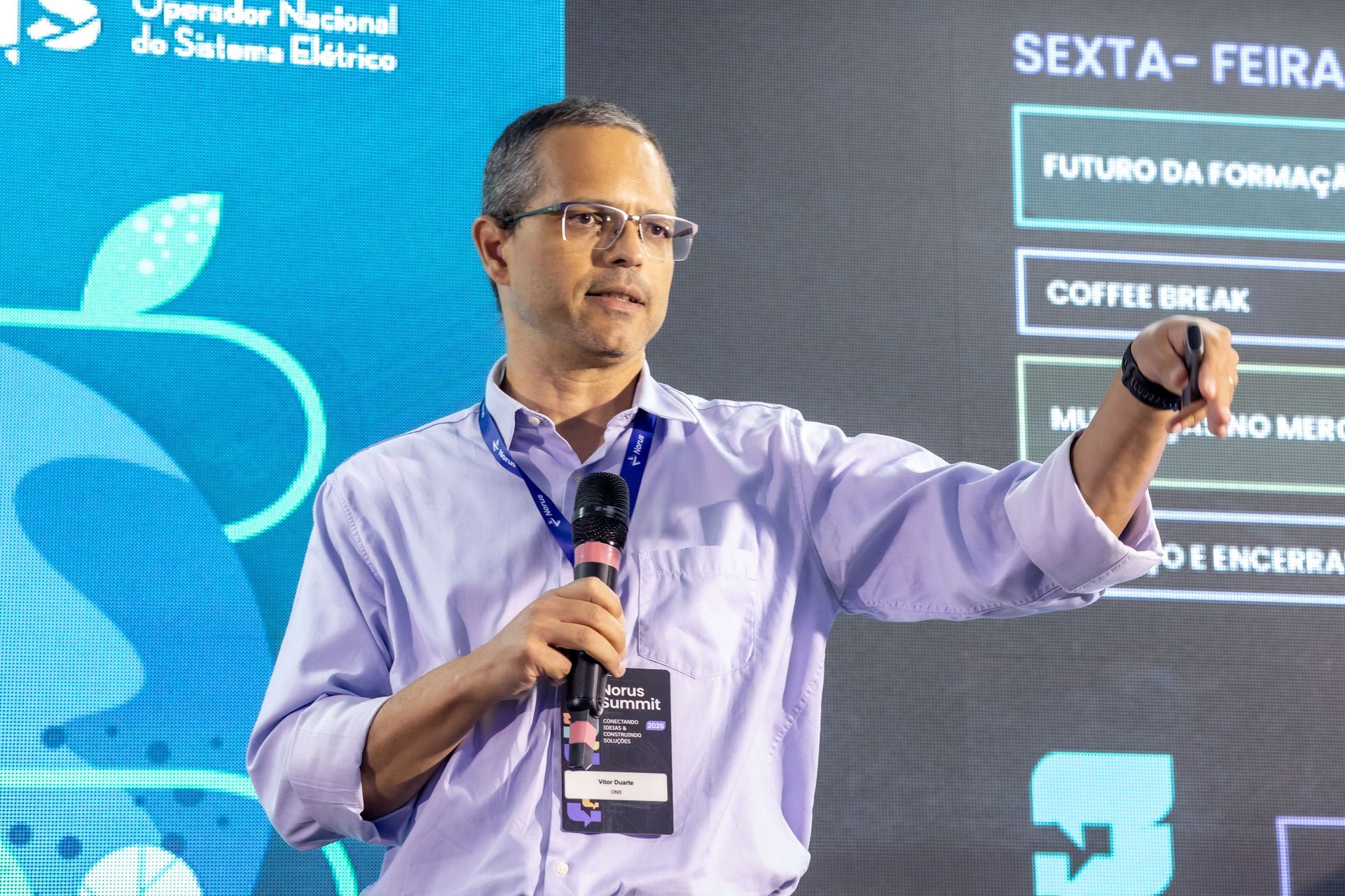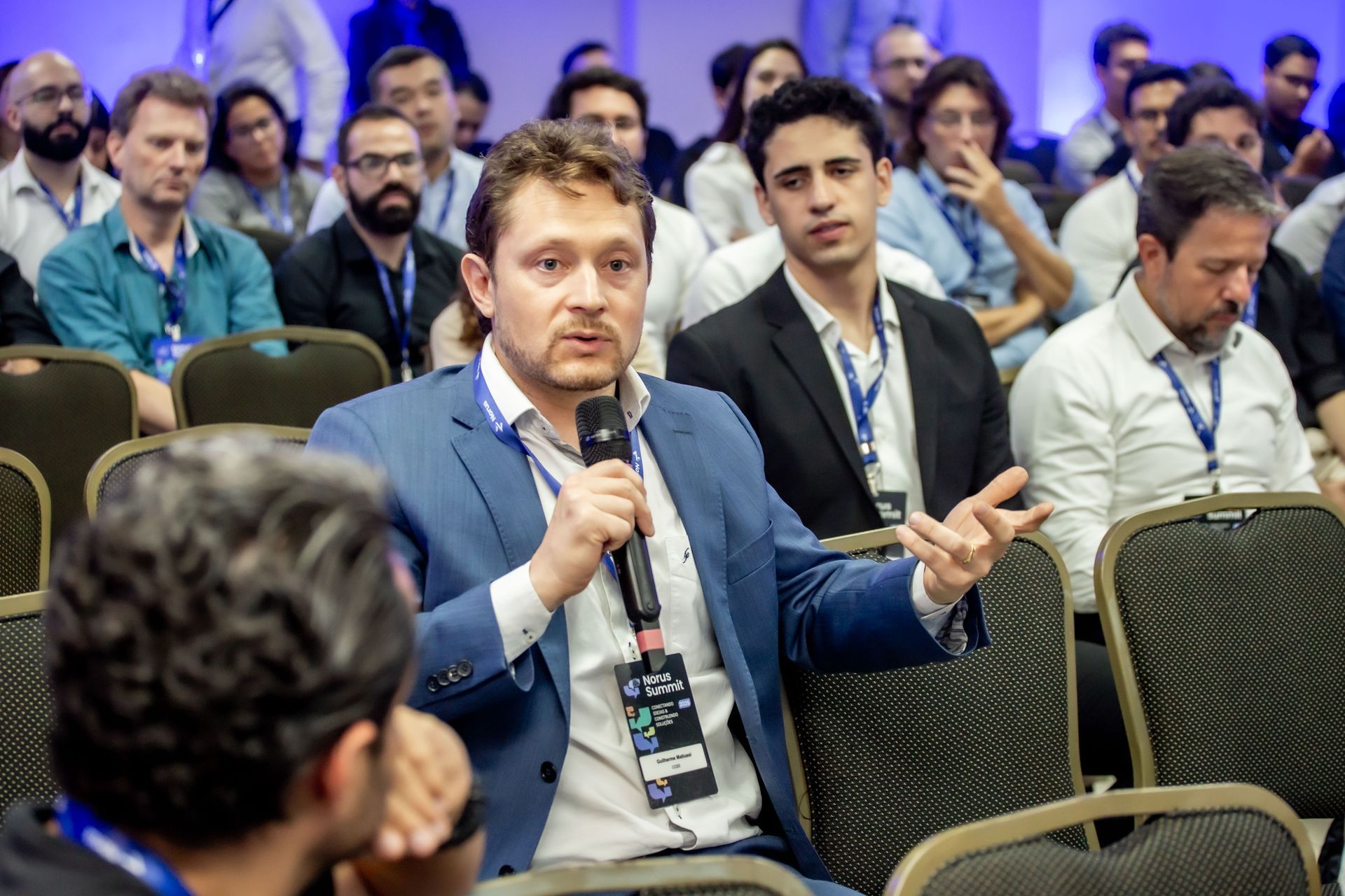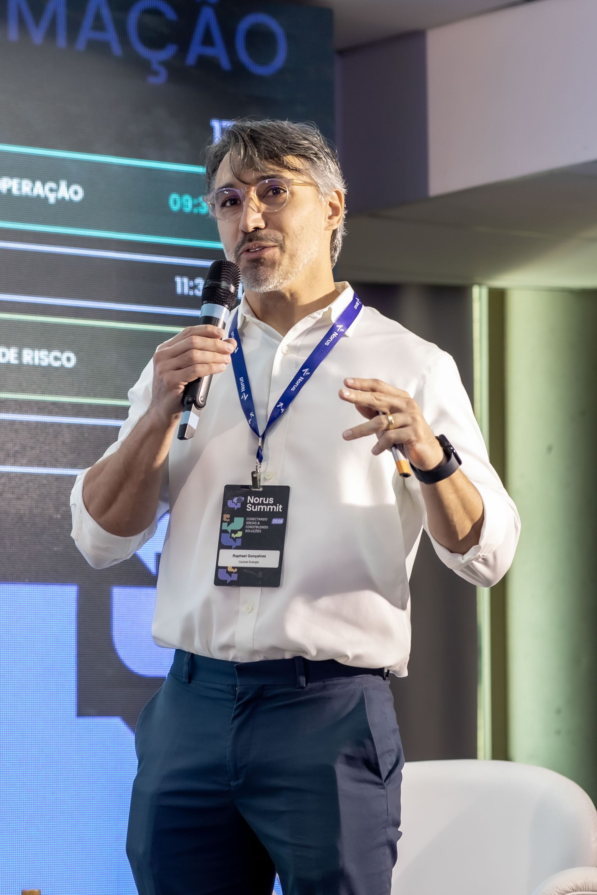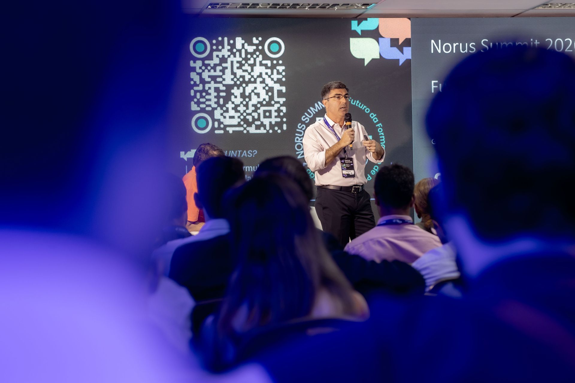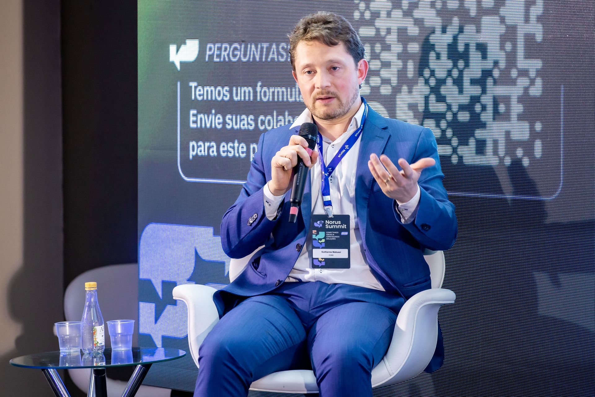 A abertura do evento foi conduzida pelo fala do CEO da Norus Vitor Luiz de Matos, com agradecimentos especiais ao parceiro AWS, que contribuiu com o Norus Summit.