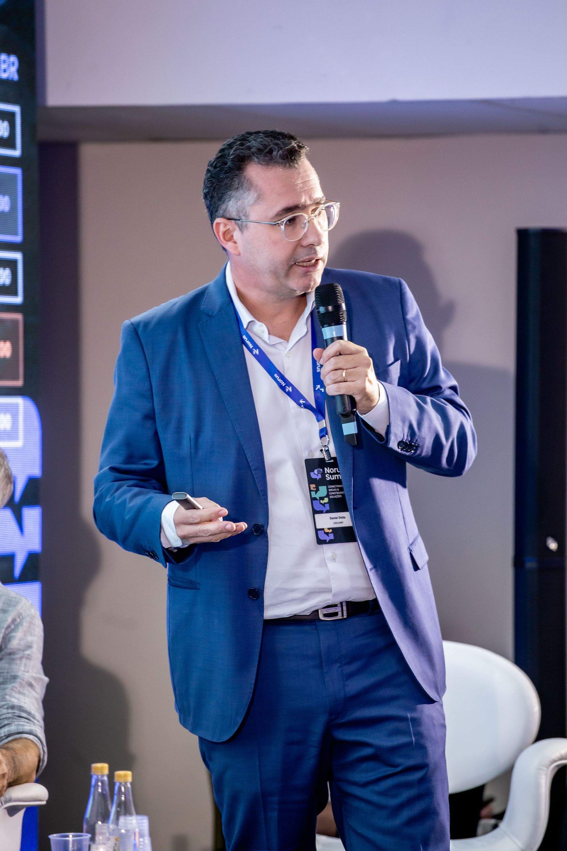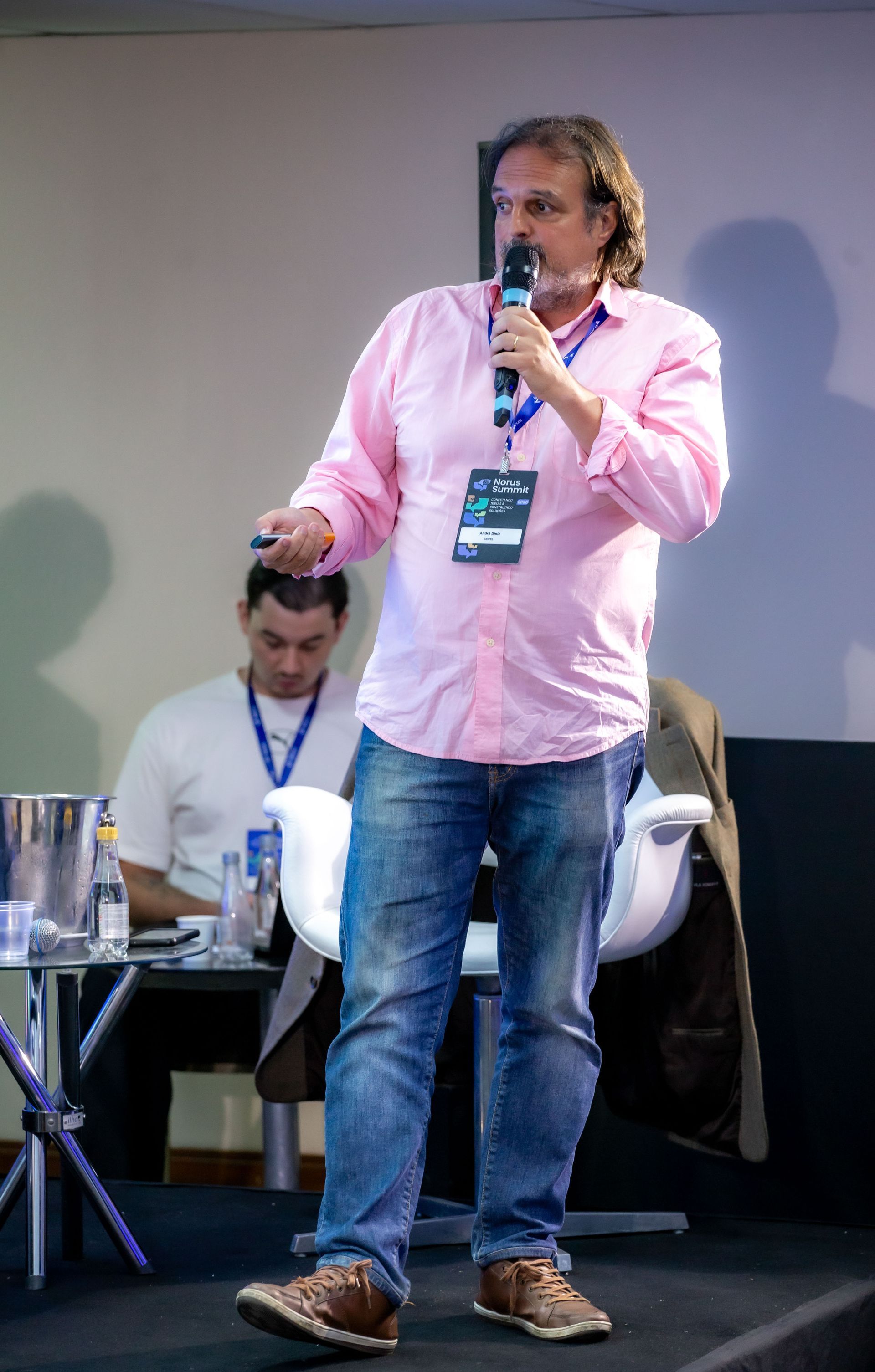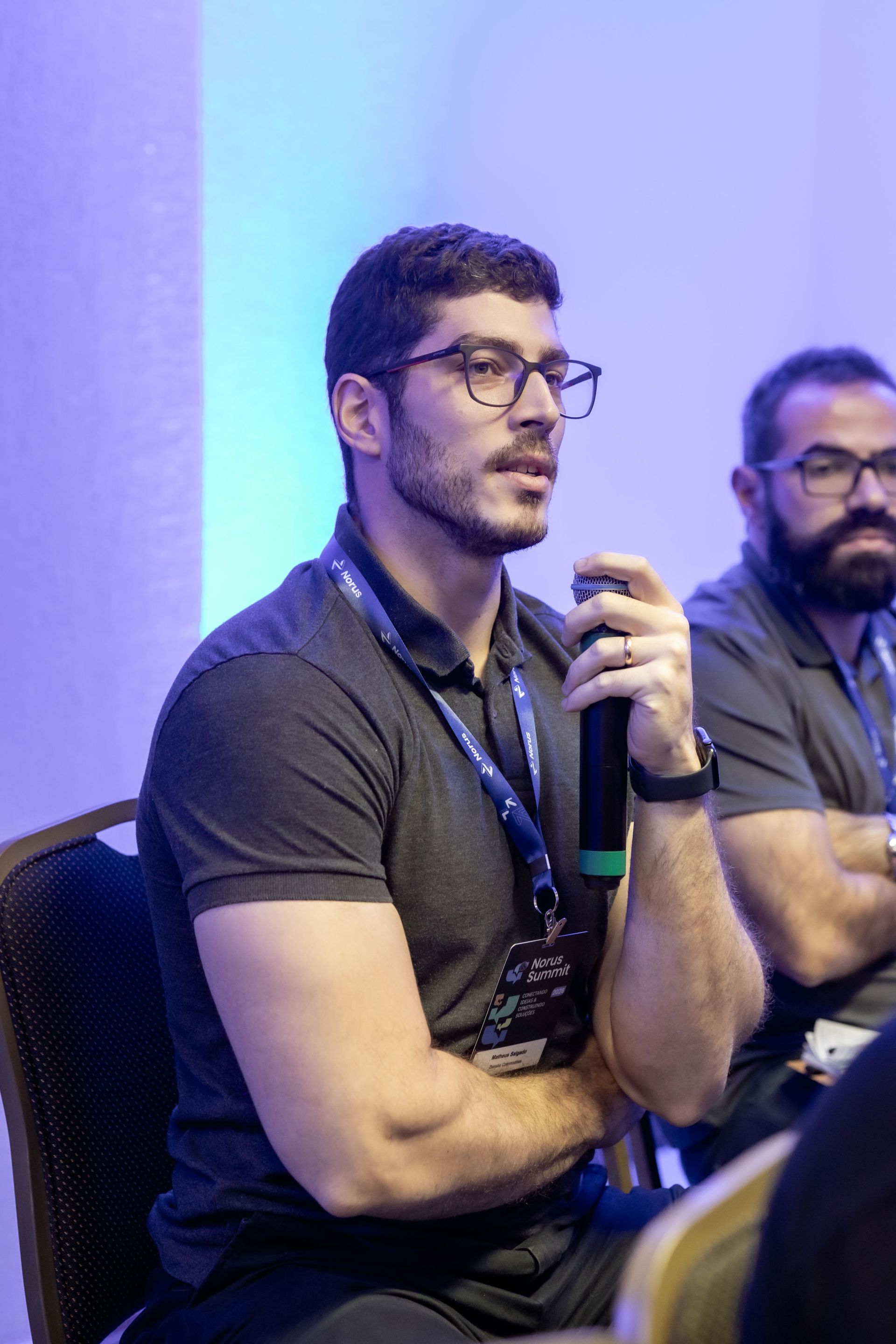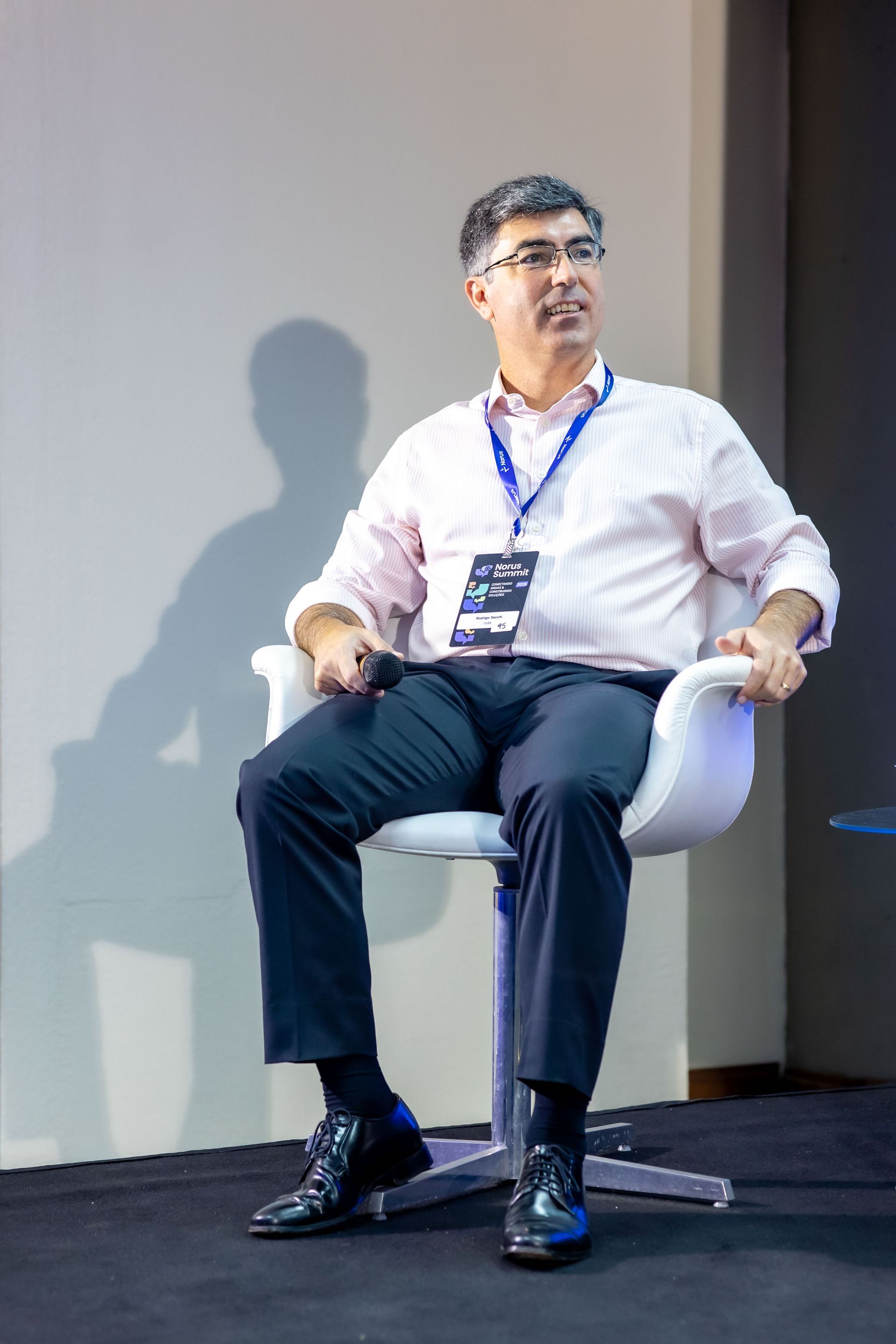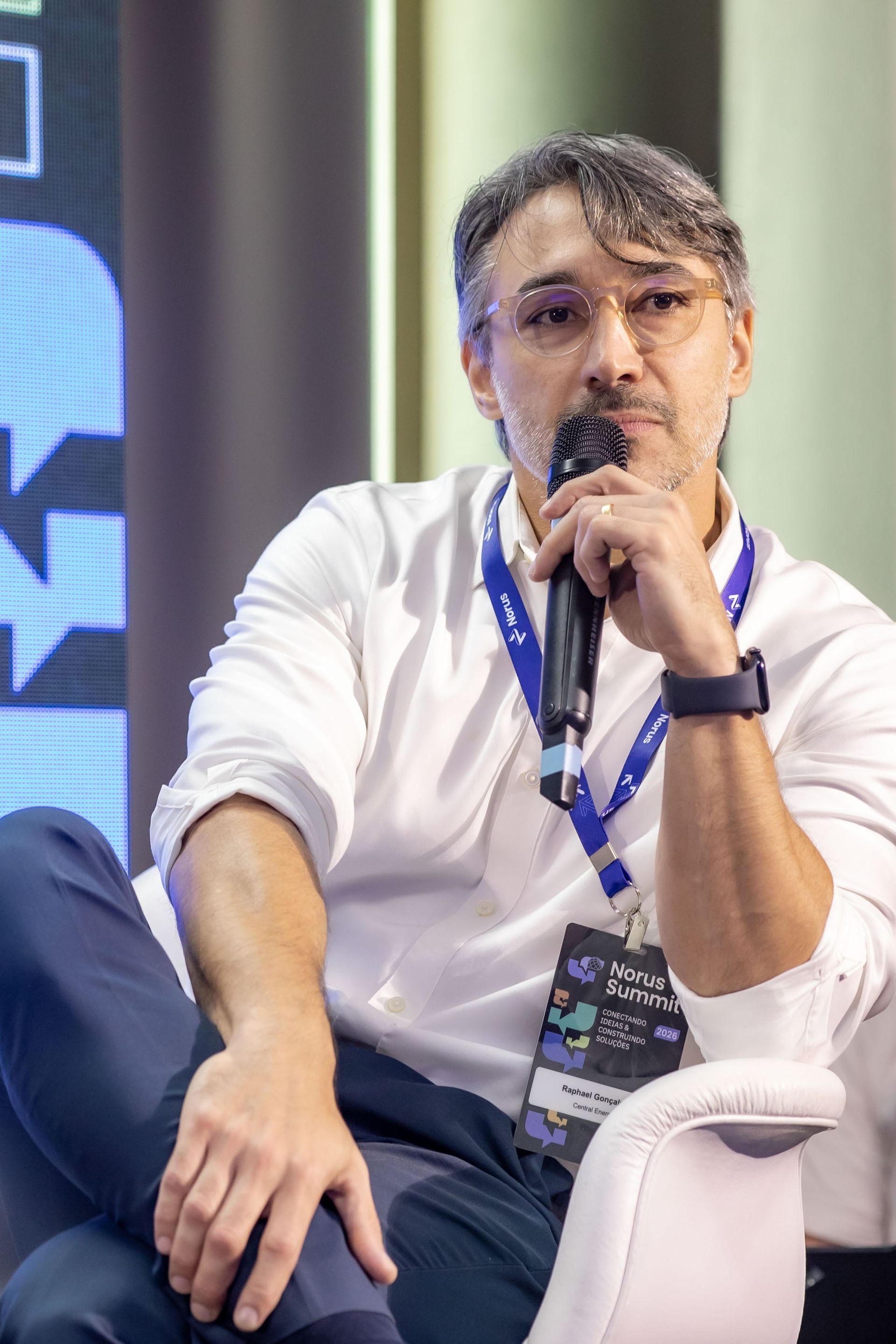 A abertura do evento foi conduzida pelo fala do CEO da Norus Vitor Luiz de Matos, com agradecimentos especiais ao parceiro AWS, que contribuiu com o Norus Summit.