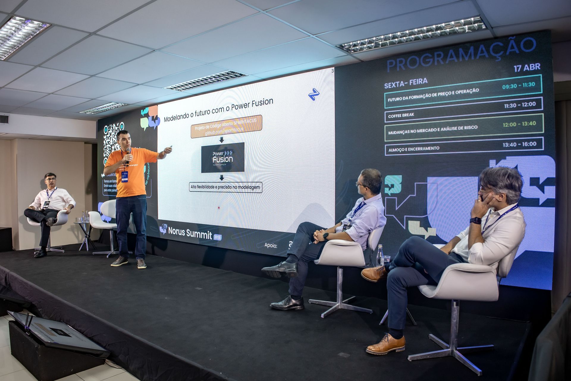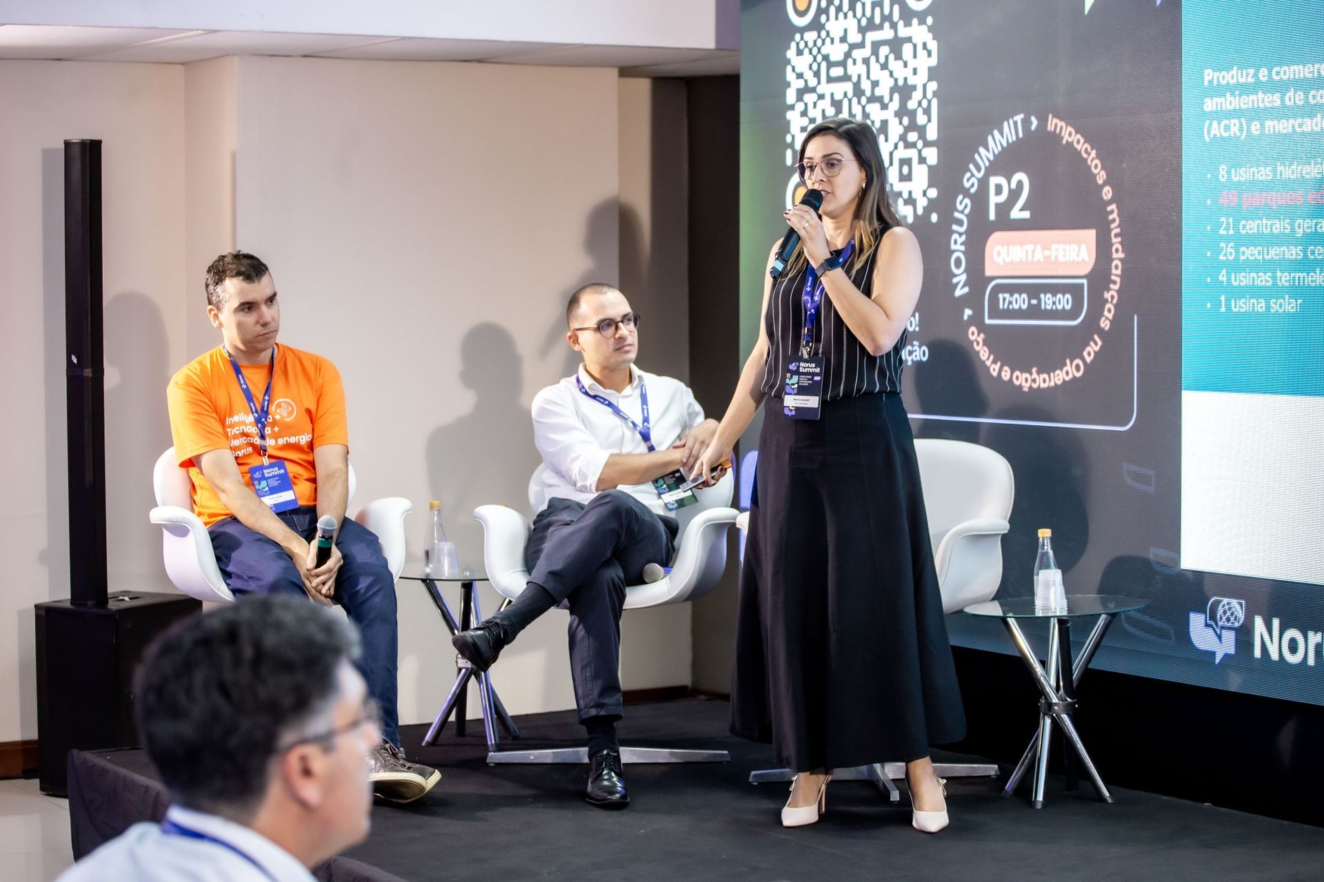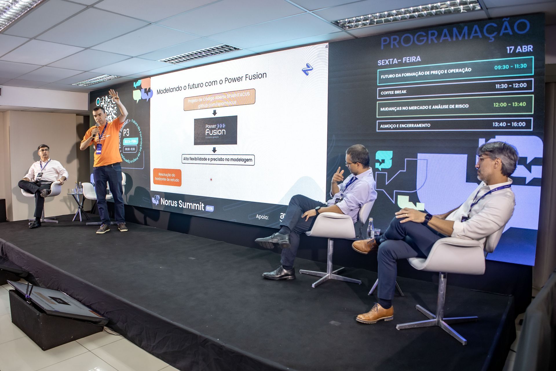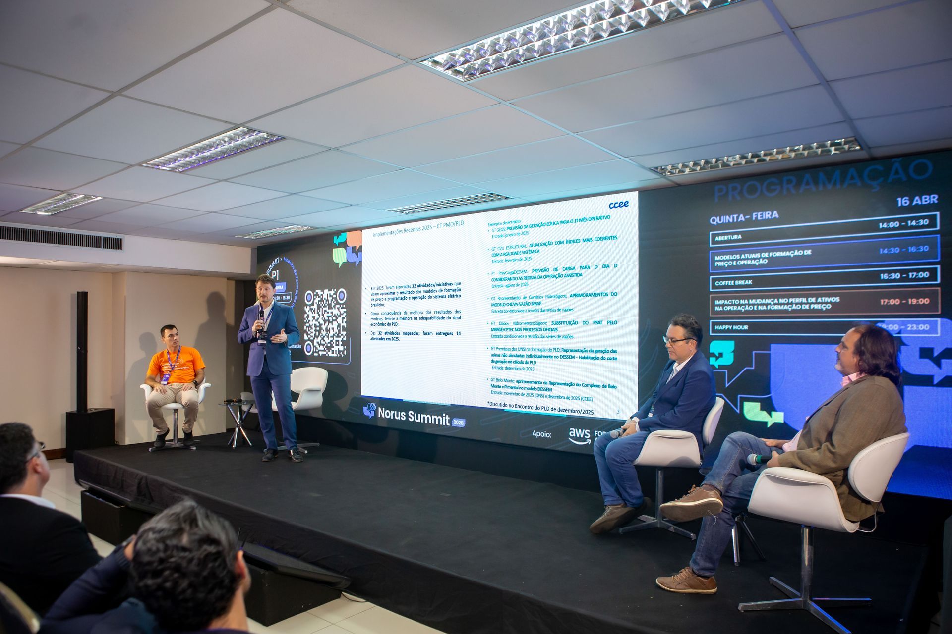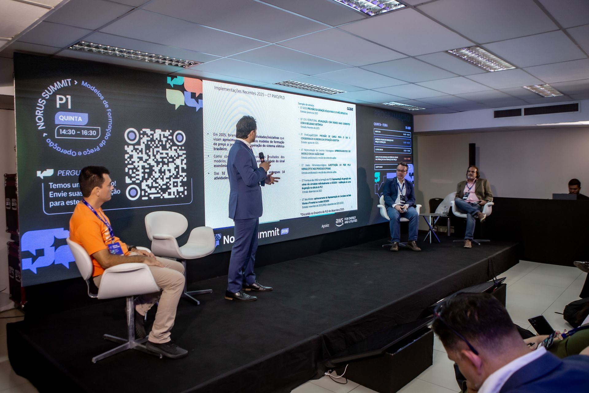 O painel contou com a moderação e participação do líder de estudos e pesquisas em energia da Norus - Paulo Vitor Larroyd, Raphael Gonçalves – Sócio (fundador) da Central Energia, Rodrigo Sacchi - Gerente Executivo de Preços, Modelos e Estudos Energéticos da CCEE e Vitor Duarte - Especialista em Planejamento Energético na Diretoria de Planejamento do ONS.