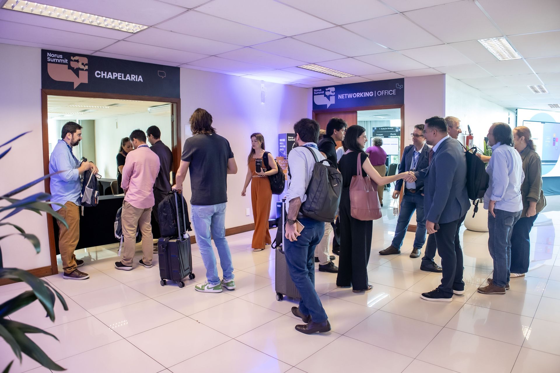 O Norus Summit também é um ponto de reencontros e construção de novas conexões. Nosso espaço Networking | Office foi idealizado para que os participantes ficassem à vontade durante todo o evento, de maneira que demandas de trabalho, videochamadas e conversas paralelas pudessem ser realizadas sem perder a conexão com as plenárias.